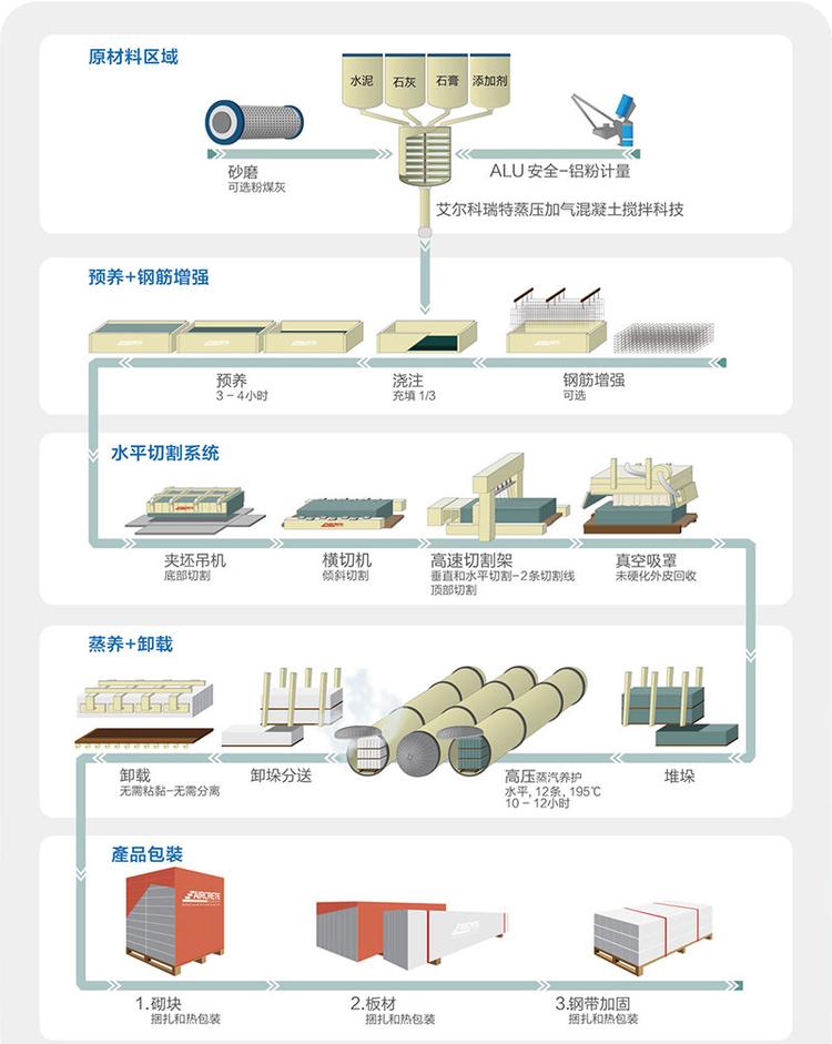 蒸壓加氣塊設(shè)備可以根據(jù)原材料類別、品質(zhì)、主要設(shè)備的工藝特性等,采取不同的工藝進(jìn)行生產(chǎn)。目前國內(nèi)主要有三大原材料體系,即(水泥—石灰—砂系列,水泥—石灰—粉煤灰系列和水泥—礦渣—砂)等。