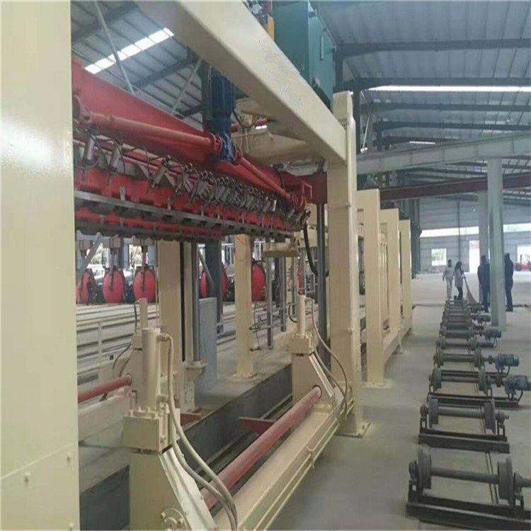 坯體在釜前停車線上編組完成后,打開要出釜的蒸壓釜釜門,先用卷?yè)P(yáng)機(jī)拉出釜內(nèi)的成品釜車,然后再將準(zhǔn)備蒸壓的釜車用卷?yè)P(yáng)機(jī)拉入蒸壓釜進(jìn)行養(yǎng)護(hù)。釜車上的制成品用橋式起重機(jī)吊到成品庫(kù),然后用叉式裝卸車運(yùn)到成品堆場(chǎng),空釜車及釜底板吊回至回車線上,清理后用卷?yè)P(yáng)機(jī)拉回碼架處進(jìn)行下一次循環(huán).
