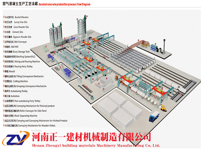 加氣塊生產(chǎn)線生產(chǎn)工藝流程分為六個工段:
