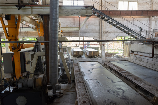 當(dāng)坯體因為環(huán)境溫度太低而具有過量水分進(jìn)行養(yǎng)護(hù)時,由于溫度應(yīng)力和濕度應(yīng)力,將使坯體發(fā)生局部或全部變形。因此,加氣塊設(shè)備生產(chǎn)中,對靜停的環(huán)境溫度有一個基本要求,即一般應(yīng)不低于20度,為了縮短靜停時間,提高產(chǎn)量和質(zhì)量,目前工廠大多采用定點(diǎn)澆注,熱室靜停,靜停的溫度要求在40-50度,有些移動澆注工藝,因沒有熱靜停室,冬季普遍采用暖氣來提高車間溫度。