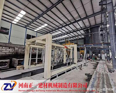 3、澆注工藝:采用固定澆注,模具移動到澆注攪拌機下方,接受澆注后,自動進入能夠控制濕度和溫度的養(yǎng)護室,加速胚體的硬化。