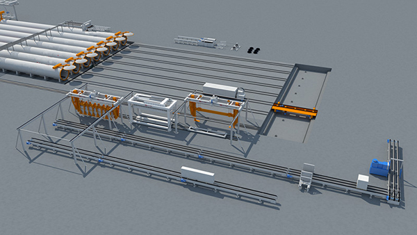 翻轉(zhuǎn)吊具是加氣混凝土生產(chǎn)中的重要設(shè)備,屬于加氣混凝土設(shè)備的重要組成部分。 翻轉(zhuǎn)吊具將坯體(帶模具)在空中翻轉(zhuǎn)90度,吊運(yùn)后放置于切割小車上,脫模后即可通過切割機(jī)操控臺對坯體進(jìn)行切割。另外,將脫模下來的模框與返回的側(cè)板進(jìn)行組模,吊運(yùn)至澆注回車線上進(jìn)行循環(huán)澆注。