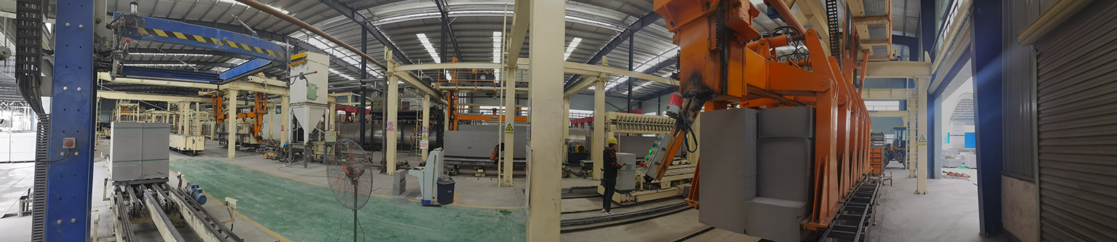 靜養(yǎng)、切割、編組工段所需設(shè)備:澆注擺渡車(chē)(自動(dòng)頂推、鎖定)、模具、側(cè)模板、模具牽引機(jī)、翻轉(zhuǎn)脫模輸送機(jī)構(gòu)、脫模液壓吊具、切割機(jī)組、廢漿攪拌裝置、側(cè)板輸送輥道、半成品輸送機(jī)構(gòu)、半成品吊具、編組擺渡車(chē)、蒸養(yǎng)小車(chē)等設(shè)備。