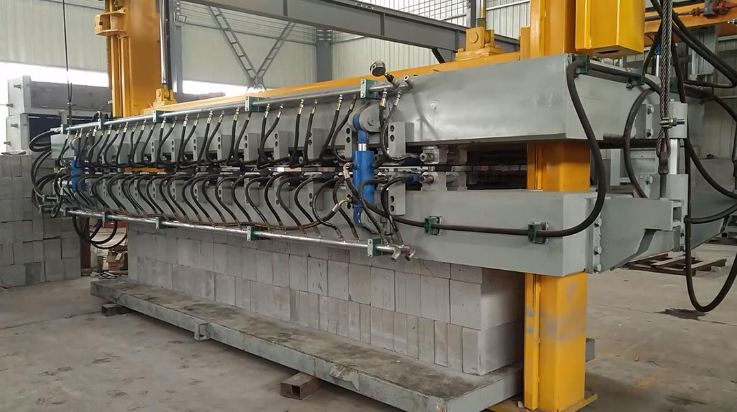 5.本機型除生產(chǎn)砌塊外還生產(chǎn)板材,而且對坯體作六面切割,所以制品質(zhì)量不受涂模油及模具變形影響;