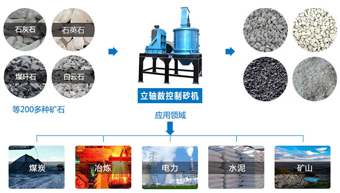 7:適用范圍廣泛,對于河卵石、玄武巖、花崗巖、輝綠巖、鐵礦石、石英石等高硬度的物料,數(shù)控立式制砂機也具有高效的破碎效果,成品率可達85%以上。